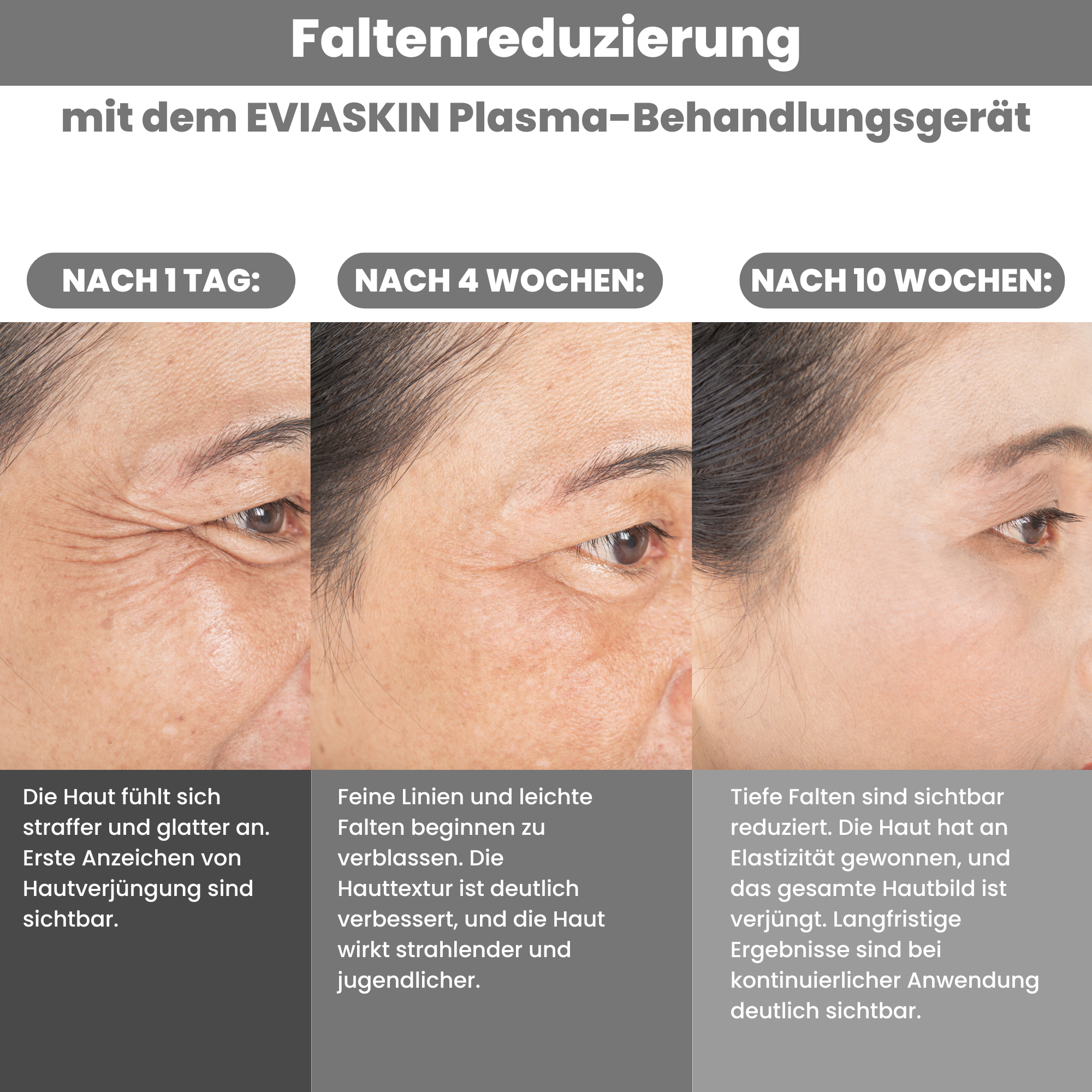 Der Eviaskin Plasma-Pen fördert die Regeneration von Kollagen und mildert so Falten, während er gleichzeitig den Hautstoffwechsel beschleunigt und die Hautstruktur verbessert. Seine entzündungshemmende Wirkung hilft zudem bei Akne, indem er die Talgsekretion hemmt und das Wiederauftreten von Unreinheiten verhindert, was zu einer strafferen, jugendlicheren Haut führt.